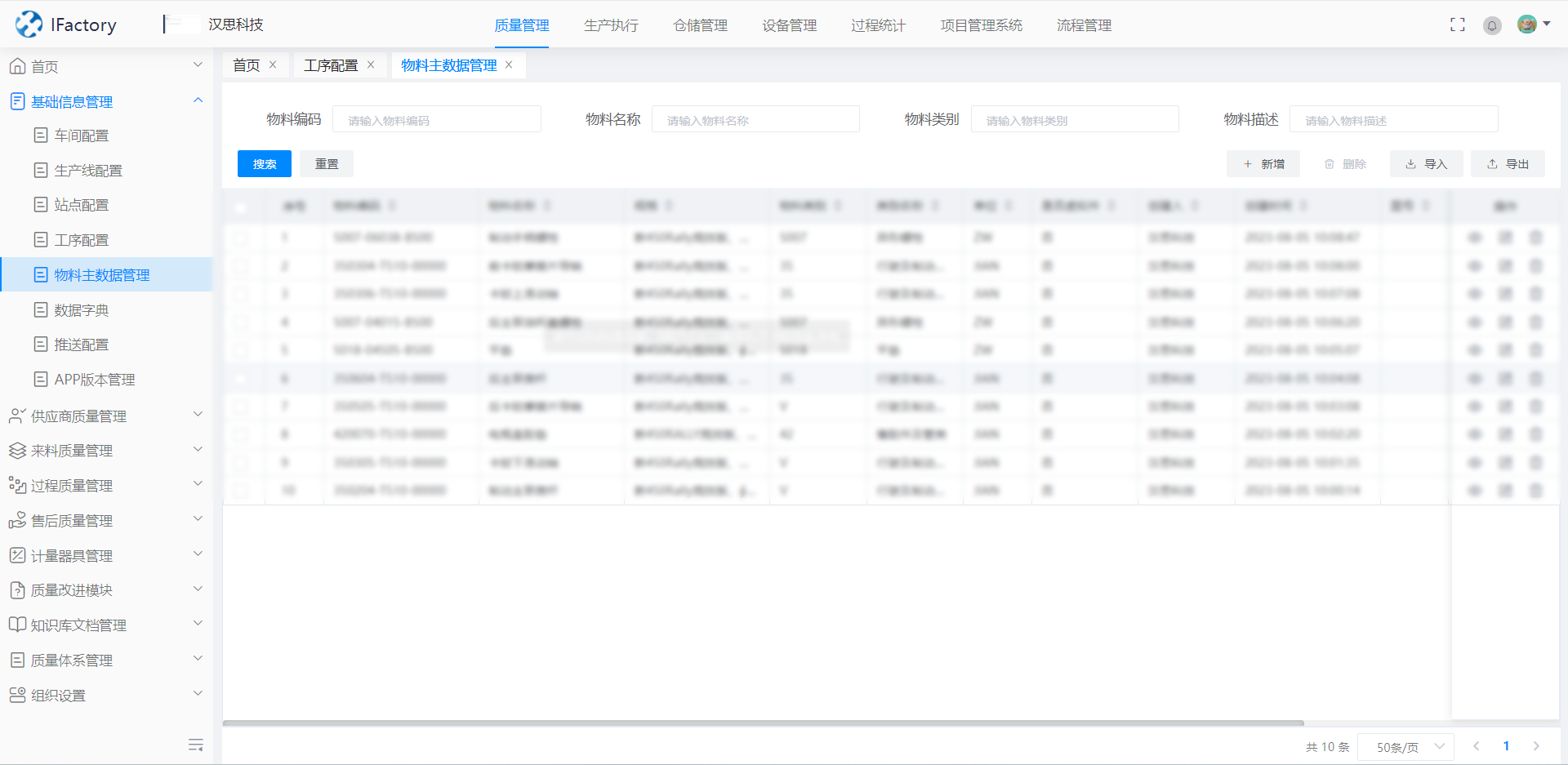 2、物料主數(shù)據(jù),包含物料編碼、物料名稱等一些物料的基礎(chǔ)信息。物料主數(shù)據(jù)一般在ERP等系統(tǒng)進行定義,QMS系統(tǒng)一般僅引用該數(shù)據(jù),不對該數(shù)據(jù)進行修改等操作。但需要注意物料主數(shù)據(jù)的及時更新同步。
